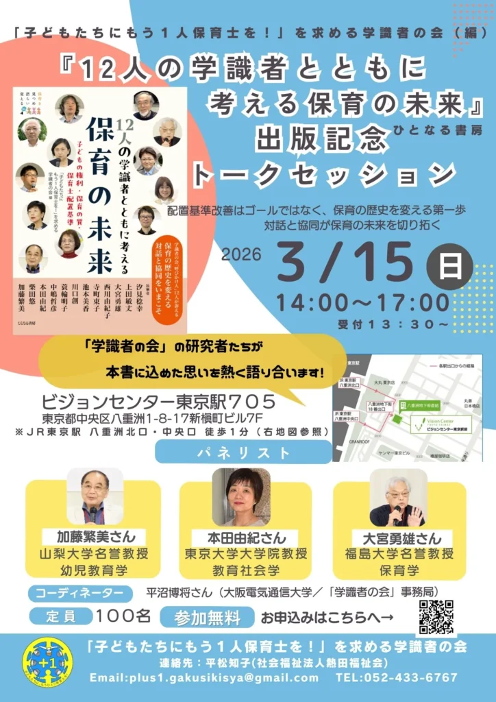 3/15『12人の学識者とともに考える保育の未来』出版記念イベント開催決定!